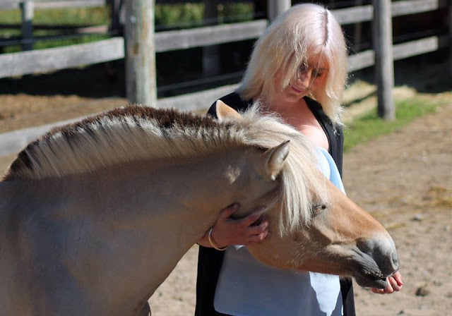 Ulla on kyllä todella taitava opettaja maasta- ja selästäkäsin. Saatiin paljon uusia vinkkejä, ja jopa taluttaessa käsi käännettiin ns "mopokaasu"-suuntaan, kun yleensä ollut päinvastoin. Näin saa enemmän voimaa käteen ja suunta on eteenpäin. Tunti oli kyllä todella hyvä, ja saatiin uutta harjoiteltavaa. Nemo on nopea ja rauhallinen oppija, ja meillä molemmilla oli kyllä todella antoisa ja mukava tunti!